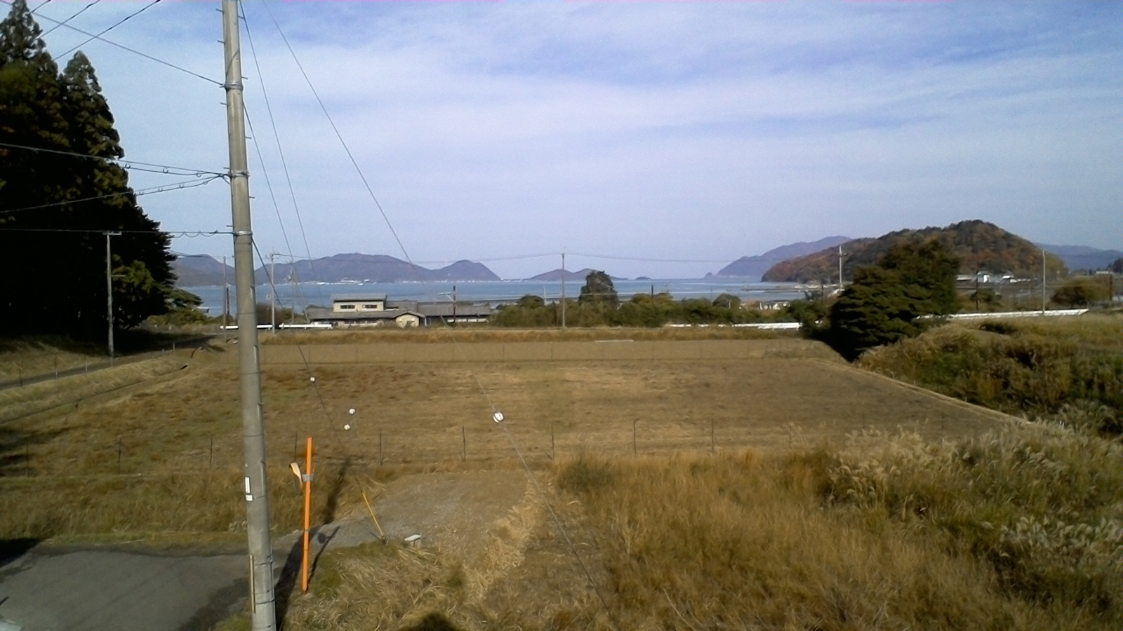 建物の窓からは、遠く日本海の内海が見えます。すく近くには人家はありません。西側は竹薮と森林が広がり、南側に離れた所に数軒の民家がありますが、その先何十キロmと森がつづいています。難点としては、高速道路や線路が近いので車や電車の音はします。夏場は農地の影響は多少はあります。冬場は北風が強く、また福井の若狭なので近くに原発はあります。